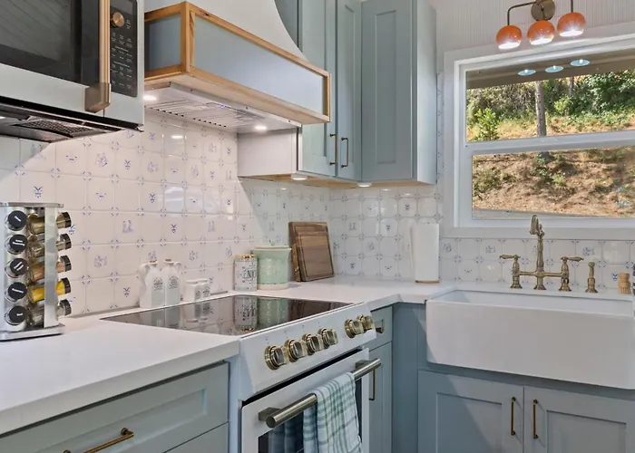 Een ingerichte keuken van Yosemite Family Getaway W Lake, Golf, Horses, Pool villa is uitgerust met koffie- en theevoorzieningen, een koelkast, een oven. Pine Mountain Lake Country Club Restaurant and Bar ligt op 6 minuten loopafstand van de woning en verwent gasten met gerechten uit de Amerikaanse keuken.